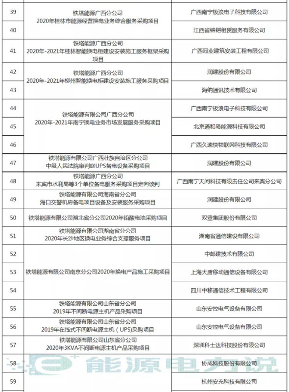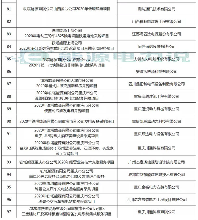 據(jù)統(tǒng)計共81家單位(含聯(lián)合體)中標鐵塔能源公司的項目。