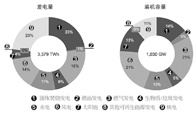 圖2 2020年歐盟發(fā)電量和發(fā)電裝機(jī)容量(預(yù)估)
