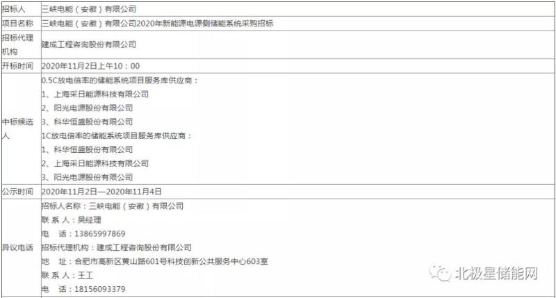 三峽電能(安徽)有限公司2020年新能源電源側(cè)儲(chǔ)能系統(tǒng)采購中標(biāo)公示