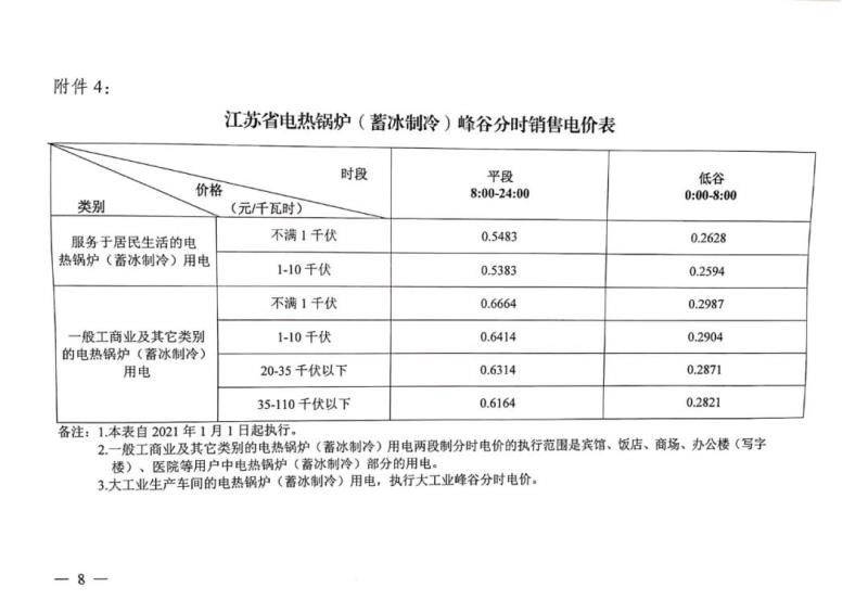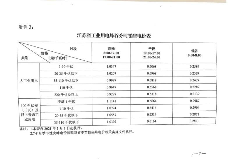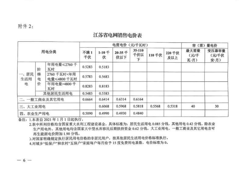 三、為應(yīng)對新冠疫情影響,今年國家實施階段性降低企業(yè)用電成本政策,本年度繼續(xù)執(zhí)行現(xiàn)行輸配電價和銷售電價。本通知所附江蘇電網(wǎng)輸配電價和銷售電價自2021年1月1日起執(zhí)行。