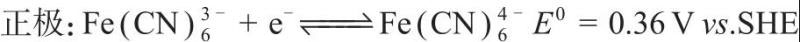 (4)探索如Fe(CN)63-/Fe(CN)64-等鐵的絡(luò)合物電對與其他經(jīng)濟(jì)、高穩(wěn)定性、高可逆性的水系反應(yīng)電對的新型電極組合,也可以嘗試與醌類等易溶于水的有機(jī)物的氧化還原電對結(jié)合,利用絡(luò)合物或者有機(jī)分子等大分子滲透弱、反應(yīng)動力學(xué)性能強(qiáng)的優(yōu)勢,探索能量效率高的水系液流電池體系。