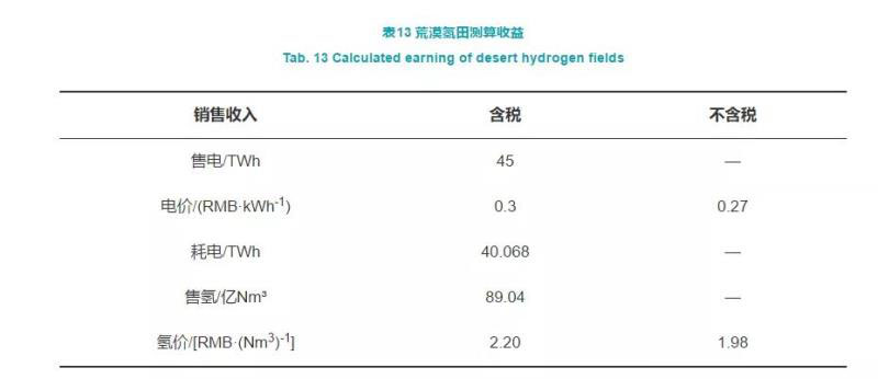 主要的投資,65%用于光伏電站,光伏發(fā)電用來電解制氫,10%的高峰電力用于外送,以平衡系統(tǒng)負(fù)荷,提高項(xiàng)目的經(jīng)濟(jì)性?;哪畾涮餃y(cè)算收益如表13所示。