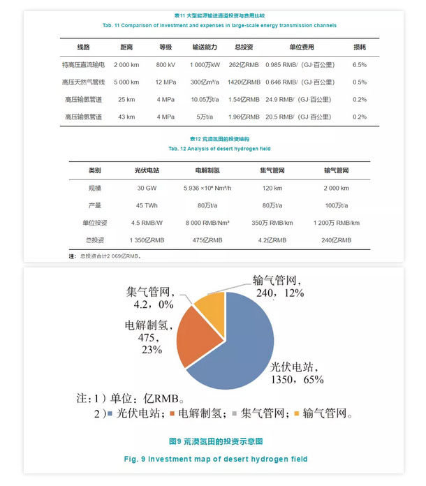 荒漠氫田是以制氫為目的的光伏、風(fēng)電和電解制氫、管道輸氫系統(tǒng),包括:400 km2的荒漠光伏電站及附屬系統(tǒng),80萬t/a的電解水系統(tǒng),和100萬t/a、2 000 km集氣高壓輸氫管線。