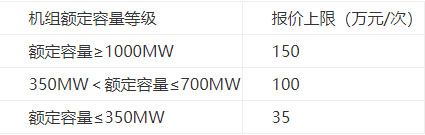 第三十八條 按機組額定容量等級對啟停調峰交易報價設置上限,具體如下: