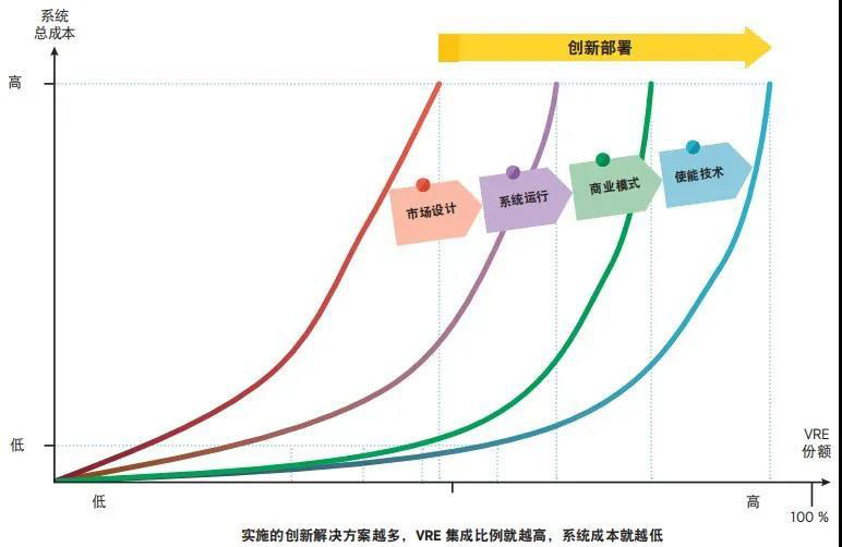 為了實(shí)現(xiàn)具有成本效益的全球轉(zhuǎn)型,從而形成低碳、可持續(xù)、可靠和包容性的能源系統(tǒng)這一目標(biāo),所采取的戰(zhàn)略需要在最大限度地提高相關(guān)效益的同時(shí),最大限度地降低與 VRE 集成相關(guān)的成本。電力系統(tǒng)的創(chuàng)新可以通過增加系統(tǒng)靈活性的解決方案,來降低 VRE的集成成本。