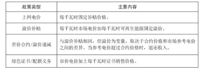 依照歐盟可再生能源指令有關規(guī)定,各成員國根據國情制定了各自的國家可再生能源行動計劃和支持政策,其中絕大多數支持政策集中在發(fā)電行業(yè),包括上網電價、溢價補貼、差價合約、綠色證書等。歐洲可再生能源政策機制是激勵行業(yè)快速發(fā)展的關鍵。