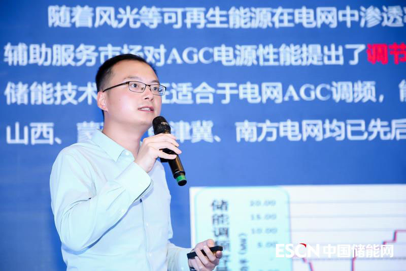 中國(guó)電力工程顧問(wèn)集團(tuán)華東電力設(shè)計(jì)院智慧能源室主任吳俊宏在《電源側(cè)儲(chǔ)能商業(yè)模式及風(fēng)險(xiǎn)解析》主題報(bào)告中指出,隨著風(fēng)光等可再生能源在電網(wǎng)中滲透率不斷提高,電源的間歇性對(duì)電網(wǎng)穩(wěn)定帶來(lái)了挑戰(zhàn)。因此,輔助服務(wù)市場(chǎng)對(duì)AGC電源性能提出了調(diào)節(jié)速率快、調(diào)節(jié)精度高、頻繁轉(zhuǎn)換功率調(diào)節(jié)方向等較高要求。儲(chǔ)能技術(shù)的特征適合于電網(wǎng)AGC調(diào)頻,能夠提高AGC性能指標(biāo)基數(shù),獲取AGC補(bǔ)償費(fèi)用。目前,山西、蒙西、京津冀、南方電網(wǎng)均已先后出臺(tái)針對(duì)輔助調(diào)頻服務(wù)的補(bǔ)償機(jī)制。