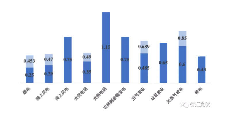 2020年,各種類型發(fā)電項目的電價如下圖所示。