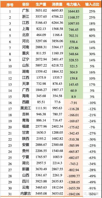 2019年,廣東、江蘇、山東省用電量位居前三,山東、內(nèi)蒙古、江蘇發(fā)電量位居前三;廣東、浙江、江蘇區(qū)外受電量位居前三,北京、上海、重慶區(qū)外受電占用電量的比重位居前三。