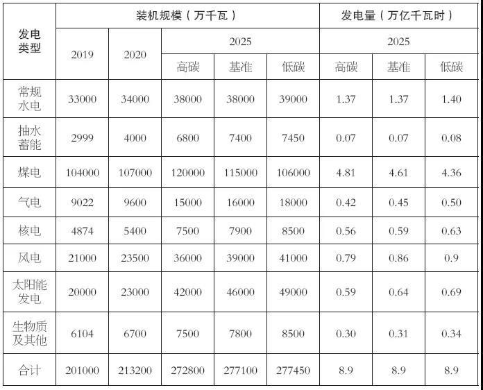 表3 2025年全國(guó)電源裝機(jī)規(guī)模及發(fā)電量