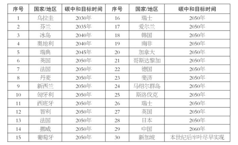 表1 全球已設(shè)定碳中和目標(biāo)時(shí)間的國(guó)家/地區(qū)