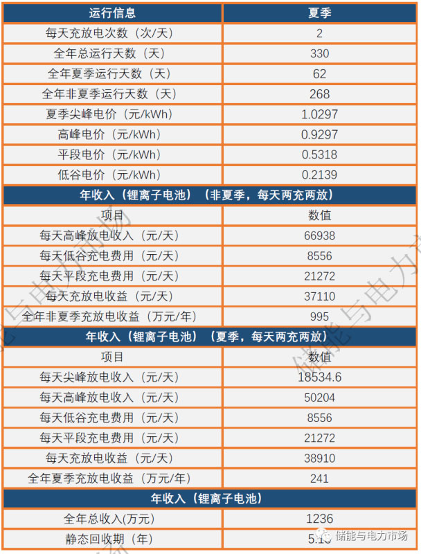 在一天兩次充放電的前提下,用戶側(cè)儲(chǔ)能項(xiàng)目的主要收益是峰谷價(jià)差以及峰平價(jià)差套利。