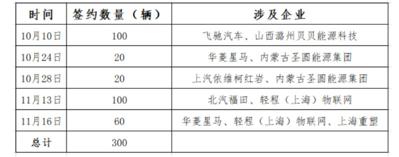 10月28日,上汽依維柯紅巖商用車有限公司與內(nèi)蒙古圣圓能源集團有限責(zé)任公司采購簽約20臺氫燃料電池重卡;