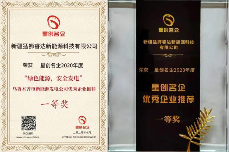 中國(guó)儲(chǔ)能網(wǎng)訊:2020年10月30日,新疆猛獅睿達(dá)新能源科技有限公司(簡(jiǎn)稱:新疆猛獅睿達(dá))在以“綠色能源 安全發(fā)電”為主題的網(wǎng)絡(luò)投票評(píng)選活動(dòng)中,榮獲“烏魯木齊市新能源發(fā)電公司優(yōu)秀企業(yè)推薦一等獎(jiǎng)”。這次網(wǎng)絡(luò)評(píng)選活動(dòng)自8月17日起至10月29日結(jié)束,共有50多家央企、國(guó)企和民企等新疆新能源發(fā)電企業(yè)參與,征選出的烏魯木齊市新能源發(fā)電優(yōu)秀企業(yè)于10月30日在網(wǎng)上予以公示,新疆猛獅睿達(dá)共得2062133票,榮登第一。