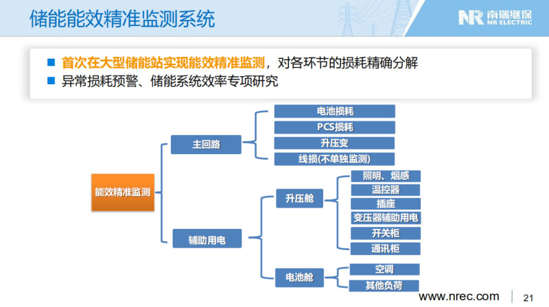大家目前都很關(guān)心效率問題,在項(xiàng)目中設(shè)計(jì)了精準(zhǔn)的能效監(jiān)控系統(tǒng),首次在大型儲(chǔ)能站實(shí)現(xiàn)了能效精準(zhǔn)監(jiān)測(cè),能效節(jié)約下來都是錢。在儲(chǔ)能站各個(gè)回路,包括輔助用電回路、充放電主回路,額外設(shè)計(jì)了很多交流電表、直流電表、分流器等。通過優(yōu)化的設(shè)計(jì),只增加了0.1%的投資,這非常容易接受。后面做儲(chǔ)能效能分析的時(shí)候可以做能效控制方面的改進(jìn)。