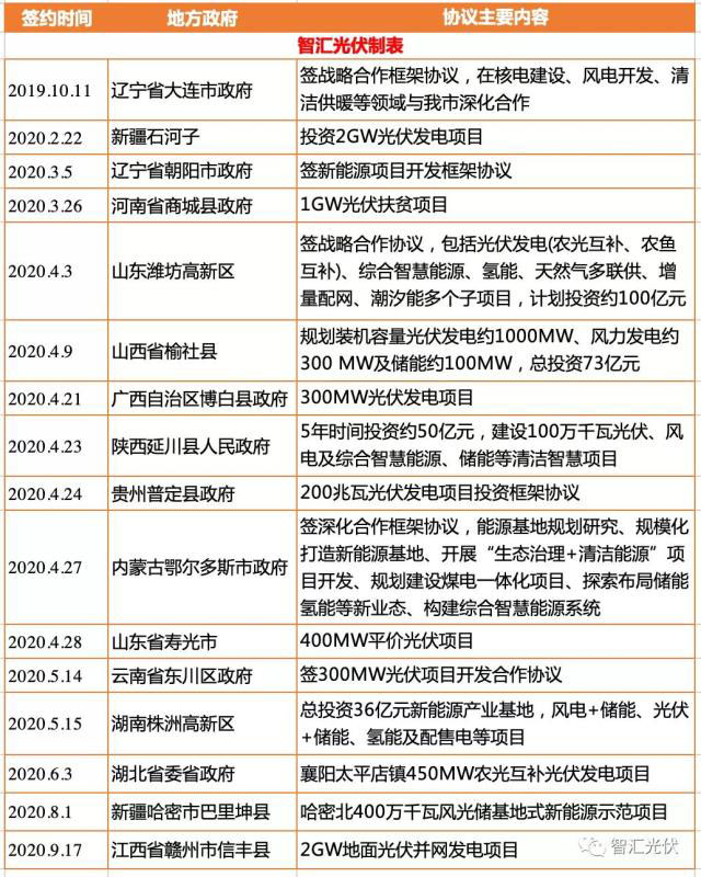 2019年年底以來,華能集團(tuán)密集跟地方政府簽約。據(jù)不完全統(tǒng)計,2019年12月份以來,華能集團(tuán)與地方政府簽署了14份新能源開發(fā)協(xié)議。具體如下表。