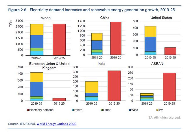 根據(jù)國際能源機(jī)構(gòu)(IEA)最新報告,用于發(fā)電的可再生能源到2020年將增長7%,與其他燃料形成鮮明對比。盡管全球能源需求將下降5%,但增加并網(wǎng)容量和不斷安裝新項目表明可再生電力強(qiáng)勁增長。