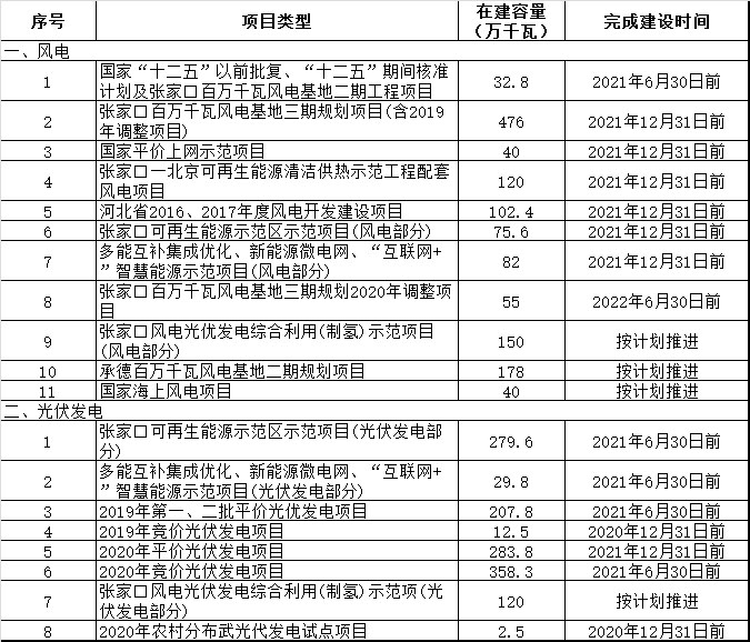 河北在建的、計(jì)劃2021年底前并網(wǎng)的光伏項(xiàng)目規(guī)模就高達(dá)1294.3萬kW;如下表所示。