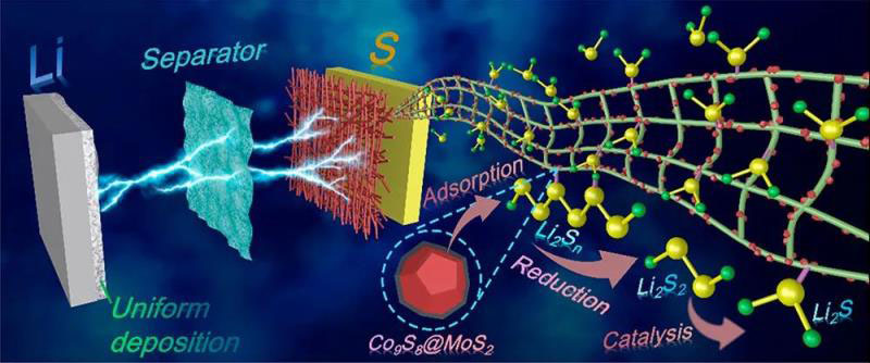 Boyu Li, et al, Tuning the Band Structure of MoS2 via Co9S8@MoS2 Core?Shell Structure to Boost Catalytic Activity for Lithium?Sulfur Batteries, ACS Nano, 2020