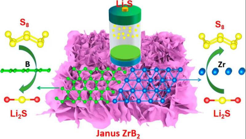 1)結(jié)合第一性原理計(jì)算和光譜學(xué)研究,研究人員證實(shí)了在局部暴露的B和Zr位置上內(nèi)置的Li-S電化學(xué)Janus晶體刻面自介導(dǎo)行為,其中帶負(fù)電的B位置主要介導(dǎo)了放電過程,而帶正電的Zr原子可在充電過程中將LiPS進(jìn)一步氧化為最終產(chǎn)物S,即使在高電流密度和高硫負(fù)荷下,也能實(shí)現(xiàn)高硫利用率。