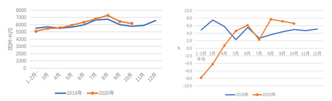 10月份,全國工業(yè)用電量同比增長7.6%,增速同比提高4.4個百分點。制造業(yè)用電量同比增長10.9%,增速同比提高9.2個百分點。制造業(yè)中,四大高載能行業(yè)合計用電量同比增長11.4%,其中,建材行業(yè)用電量同比增長15.7%,黑色行業(yè)用電量同比增長12.5%,化工行業(yè)用電量同比增長9.6%,有色行業(yè)用電量同比增長8.9%。高技術(shù)及裝備制造業(yè)合計用電同比增長12.4%,其中,汽車制造業(yè)、計算機/通信和其他電子設(shè)備制造業(yè)、通用設(shè)備制造業(yè)、電氣機械和器材制造業(yè)、醫(yī)藥制造業(yè)增速超10%,同比分別增長27.8%、21.2%、18.8%、18.3%和10.6%。消費品制造業(yè)合計用電同比增長7.1%,其中,家具制造業(yè)、農(nóng)副食品加工業(yè)、食品制造業(yè)、木材加工和木/竹/藤/棕/草制品業(yè)增速超10%,同比分別增長17.3%、15.6%、12.8%和10.0%,煙草制品業(yè)、皮革/毛皮/羽毛及其制品和制鞋業(yè)用電量為負(fù)增長。