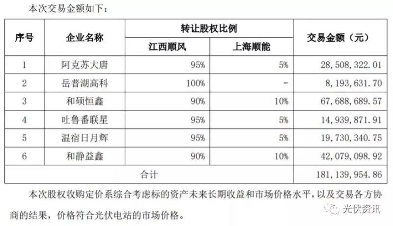 2020年3月16日,浙江正泰新能源開發(fā)有限公司與江西順風(fēng)光電投資有限公司、上海順能投資有限公司簽訂股權(quán)轉(zhuǎn)讓協(xié)議,收購其持有的6個光伏電站項目公司100%股權(quán)。