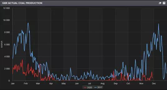 圖4 2017年和2020年英國(guó)燃煤電廠日均出力功率(MW)