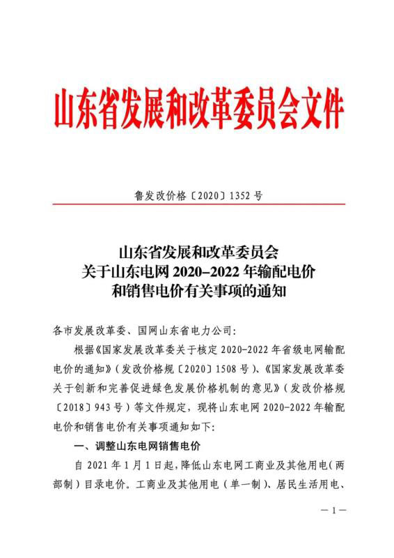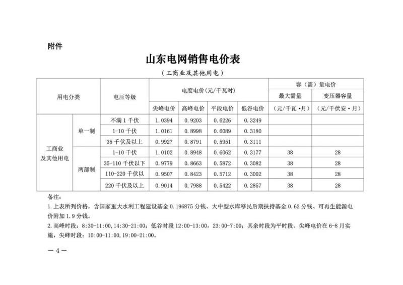 另外,文件也出臺(tái)最新的山東電網(wǎng)銷售電價(jià),詳見(jiàn)下方原文件。
