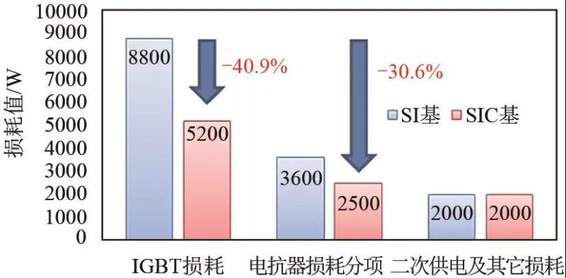 圖5 800 kW PCS SI基與SIC基模塊損耗對(duì)比