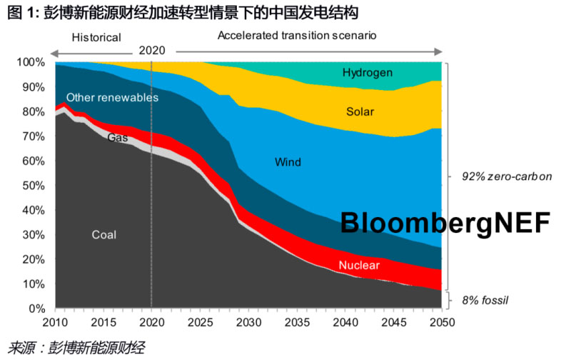 今天,彭博新能源財(cái)經(jīng)(BNEF)發(fā)布了白皮書(shū)《中國(guó)加速低碳進(jìn)程》,詳細(xì)討論了中國(guó)邁向碳中和目標(biāo)的可能路徑。這當(dāng)中包括中國(guó)工業(yè)和公路交通等領(lǐng)域加速電氣化,并加速部署可再生電源等零碳電源。