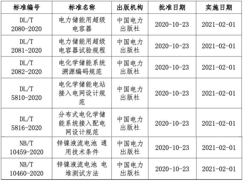 中國儲(chǔ)能網(wǎng)訊:11月27日,國家能源局發(fā)布2020年第5號公告,批準(zhǔn)了502項(xiàng)能源行業(yè)標(biāo)準(zhǔn),其中儲(chǔ)能部分包含電力儲(chǔ)能用超級電容器、電化學(xué)儲(chǔ)能系統(tǒng)溯源編碼規(guī)范、電化學(xué)儲(chǔ)能電站接入電網(wǎng)設(shè)計(jì)規(guī)范、分布式電化學(xué)儲(chǔ)能系統(tǒng)接入配電網(wǎng)設(shè)計(jì)規(guī)范等7項(xiàng)標(biāo)準(zhǔn)。新標(biāo)準(zhǔn)將于2021年2月1日開始實(shí)施。