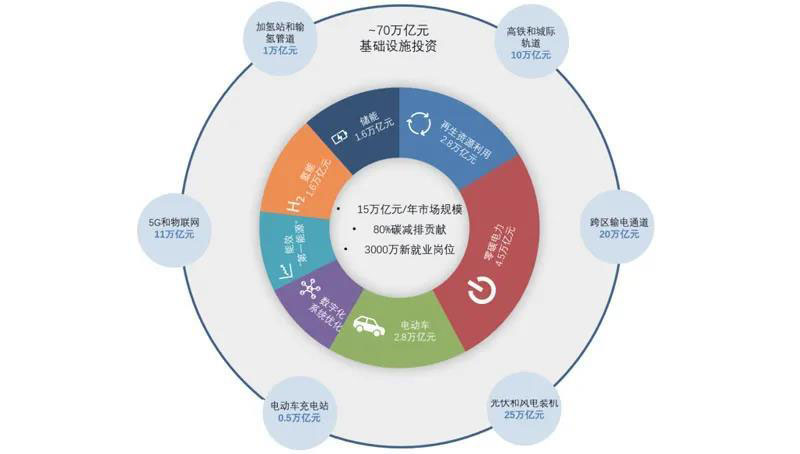 我們預(yù)計中國僅在氫能、電動汽車、可再生能源、跨區(qū)域輸電、高鐵和城際交通、5G等新能源相關(guān)領(lǐng)域的基礎(chǔ)設(shè)施投資將達到70萬億。短期來看,由于經(jīng)濟下行壓力持續(xù)存在,市場主體負債率普遍較高,國際金融風險和不確定性增加的大背景下,籌集可用于基礎(chǔ)設(shè)施和處在產(chǎn)業(yè)發(fā)展早期領(lǐng)域的資金將面臨一定挑戰(zhàn)。但從長期來看,隨著國家對相關(guān)領(lǐng)域扶持力度持續(xù)加大以及全球綠色復(fù)蘇政策的落地實施,零碳能源資產(chǎn)將迎來持續(xù)升溫的投資。