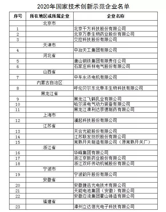 附件:2020年國(guó)家技術(shù)創(chuàng)新示范企業(yè)名單.xls