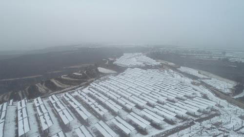 陜西魯能宜君3×20兆瓦農(nóng)光互補(bǔ)項(xiàng)目位于陜西省宜君縣,包括魯能宜君青石塬20兆瓦農(nóng)光互補(bǔ)項(xiàng)目、魯能宜君英家塬20兆瓦農(nóng)光互補(bǔ)項(xiàng)目、魯能宜君二期20兆瓦農(nóng)光互補(bǔ)項(xiàng)目三個(gè)項(xiàng)目,總裝機(jī)容量60兆瓦。由于該項(xiàng)目工程開(kāi)工時(shí)間晚、建設(shè)工期緊,且地處宜君山地,復(fù)雜的地形環(huán)境、提前到來(lái)的寒冬施工期以及緊張的設(shè)備供貨,工程建設(shè)目標(biāo)的順利實(shí)現(xiàn)面臨諸多挑戰(zhàn)。在種種不利因素下,山東三建項(xiàng)目執(zhí)行團(tuán)隊(duì)?wèi){借以往的山地施工經(jīng)驗(yàn),提前對(duì)該項(xiàng)目工程進(jìn)行科學(xué)合理策劃,制定了強(qiáng)有力的施工方案及設(shè)備供貨催繳計(jì)劃。在工程建設(shè)過(guò)程中,項(xiàng)目全體員工始終堅(jiān)守施工一線,凝心聚力,攻堅(jiān)克難,嚴(yán)把安全、質(zhì)量關(guān),加班加點(diǎn)搶趕工期,在全力推進(jìn)土建施工的同時(shí),提前安排后期電氣施工,為工程并網(wǎng)發(fā)電爭(zhēng)取了寶貴的時(shí)間。經(jīng)過(guò)日夜奮戰(zhàn),公司以最快的速度、高質(zhì)量完成工程建設(shè)任務(wù),提前完成并網(wǎng)發(fā)電節(jié)點(diǎn)目標(biāo)。