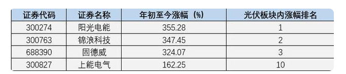 從資本市場來看,光伏設(shè)備指數(shù)年內(nèi)熱度較高,年初至今漲幅達(dá)到122.05%,在申萬三級分類指數(shù)中排名第二。值得注意的是,在光伏板塊中與龍頭組件、光伏輔材廠商相比,光伏逆變器主要廠商近期的關(guān)注度相對較低,但其年內(nèi)漲幅卻在板塊內(nèi)遙遙領(lǐng)先,具體情況如下: