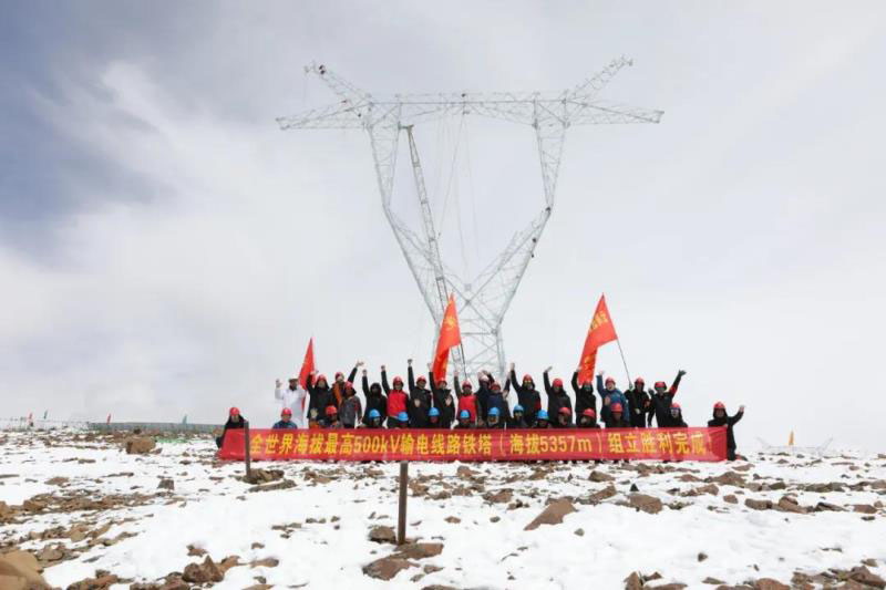 ▲阿里聯(lián)網(wǎng)工程海拔最高500千伏輸電鐵塔組立完成