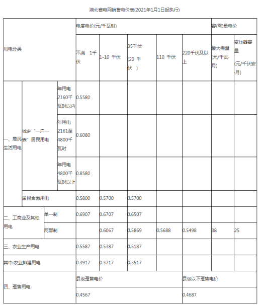 1、湖北電網(wǎng)用電容量在100千伏安及以上的工商業(yè)及其他用電(單一制和兩部制)執(zhí)行峰谷分時(shí)電價(jià),商業(yè)用電和機(jī)關(guān)、部隊(duì)、學(xué)校、醫(yī)院、城市公共照明等非居民照明用電除外。
