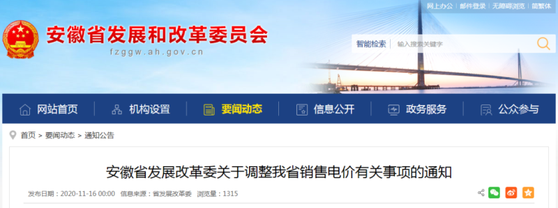 《安徽省發(fā)展改革委關(guān)于調(diào)整我省銷售電價(jià)有關(guān)事項(xiàng)的通知》