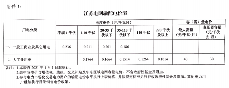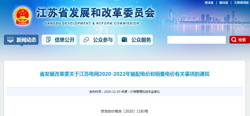 《關(guān)于江蘇電網(wǎng)2020-2022年輸配電價(jià)和銷售電價(jià)有關(guān)事項(xiàng)的通知》