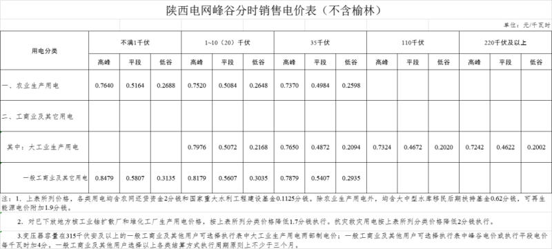 陜西電網(wǎng)銷售電價(jià)。本次陜西省輸配電價(jià)改革降價(jià)空間用于降低陜西電網(wǎng)工商業(yè)用電價(jià)格,每千瓦時(shí)平均降低4.3分錢,大工業(yè)用電基本電價(jià)每千伏安每月降低2元。