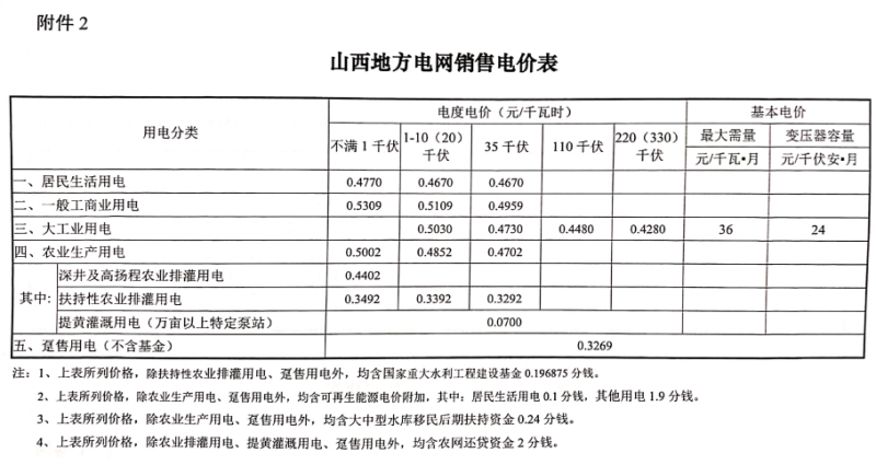 《關(guān)于山西地方電網(wǎng)輸配電價(jià)和銷售電價(jià)有關(guān)事項(xiàng)的通知》