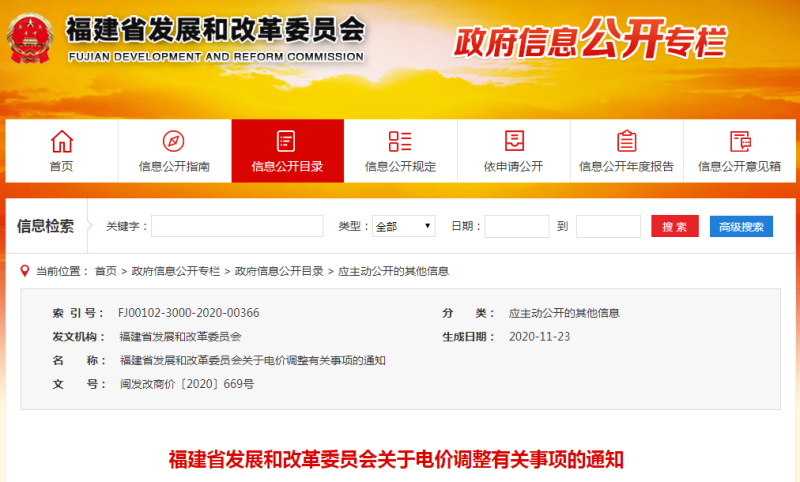 《福建省發(fā)展和改革委員會(huì)關(guān)于電價(jià)調(diào)整有關(guān)事項(xiàng)的通知》