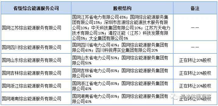 另外,國(guó)網(wǎng)湖南、浙江、山東、吉林綜合能源服務(wù)有限公司也正在進(jìn)行股權(quán)轉(zhuǎn)讓工作。