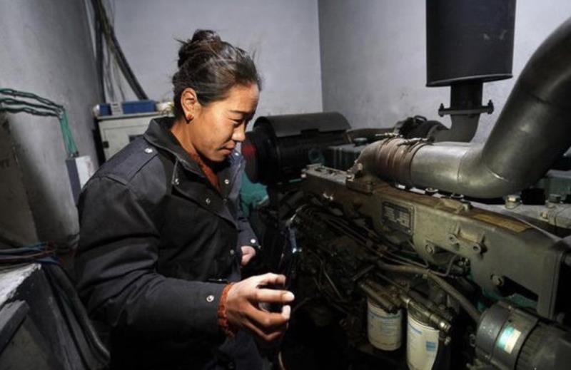 在西藏日喀則市薩嘎縣西部驛站大酒店,工作人員查看發(fā)電機運行情況(11月27日攝)。新華社記者 詹彥 攝