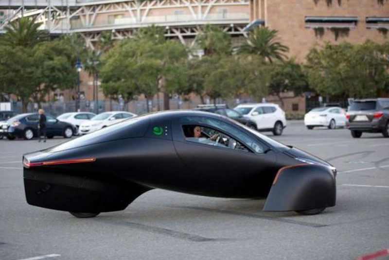 據(jù)報道,這款新型三輪雙人座(或兩個成人加一只寵物)電動汽車配備一個太陽能車頂陣列,可提供45英里的續(xù)航里程。