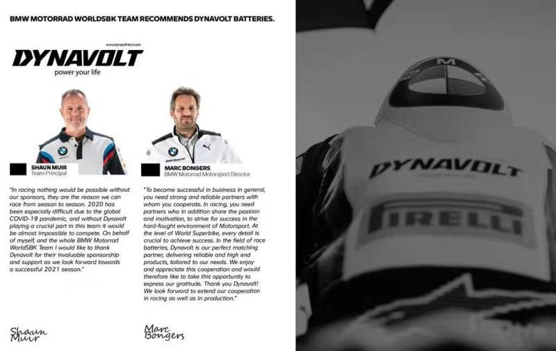中國儲能網(wǎng)訊:近日,在寶馬集團(https://www.press.bmwgroup.com/global/registration)的網(wǎng)站,刊登了題為BMW MOTORRAD WORLD TEAM RECOMMENDS DYNAVOLT BATTERIES的文章,文中,寶馬車隊經(jīng)理肖恩?繆爾和馬克?邦格斯都對猛獅表示了由衷感謝。