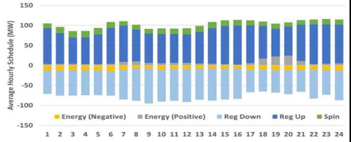 圖 2 CAISO儲能資源的平均每小時 調(diào)度安排(2019年7-12月)