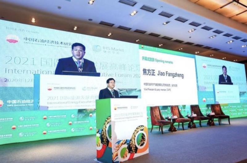 圖為中國石油天然氣集團(tuán)有限公司黨組成員、副總經(jīng)理焦方正在論壇開幕式致辭