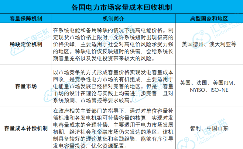 根據(jù)國(guó)家發(fā)改委2020年《容量成本回收機(jī)制工作指引》,容量成本回收機(jī)制大體可歸納為稀缺定價(jià)機(jī)制、容量市場(chǎng)和容量成本補(bǔ)償機(jī)制三類。各地區(qū)應(yīng)結(jié)合實(shí)際選擇適宜的容量成本回收機(jī)制,可通過建立容量成本補(bǔ)償機(jī)制起步。即我國(guó)在電力現(xiàn)貨市場(chǎng)建設(shè)第一階段,電力現(xiàn)貨試點(diǎn)配套容量成本回收機(jī)制,以容量補(bǔ)償機(jī)制為主要手段。