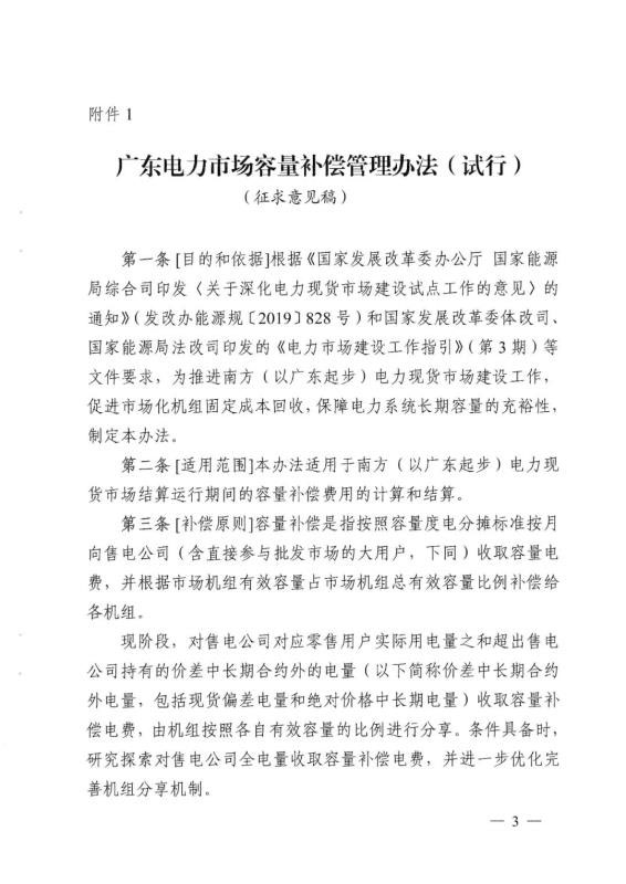 中國(guó)儲(chǔ)能網(wǎng)訊:近日,廣東省能源局、國(guó)家能源局南方監(jiān)管局發(fā)布《關(guān)于征求《廣東電力市場(chǎng)容量補(bǔ)償管理辦法(試行,征求意見稿)》等文件意見的函》?!豆芾磙k法》公開征求意見,表明繼山東之后,廣東成為中國(guó)第二個(gè)建設(shè)電力市場(chǎng)容量補(bǔ)償機(jī)制的省份。